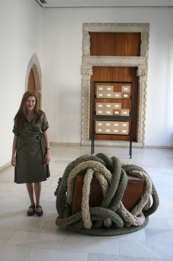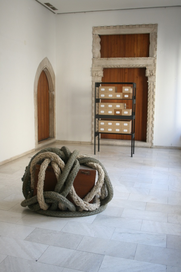 stavlja u drveni sanduk zaštićen “okovima” od brodskog užeta. Budući da predmeti u kutijama nisu vidljivi, oni kod posjetitelja potiču znatiželju. Pritom autorica naglašava individualni karakter sjećanja budući da, čak i onda kada bismo poznavali sadržaj kutija, on bi nam bio jednako nerazumljiv jer je ljudsko sjećanje u znatnoj mjeriindividualan konstrukt pa je percepcija svakog pojedinog posjetitelja neizbježno ograničena. Identifikacija je u ovom slučaju ipak djelomično moguća zato što svatko od nas nosi sa sobom vlastite slojevite i uvijek drugačije priče te posjeduje barem jedan odgovarajući predmet koji evocira događaje iz osobne prošlosti, a koji svoje autentično, odnosno emocionalno i simboličko značenje imaju samo u privatnom kontekstu. Bez obzira na samu namjeru ovog rada, ne možemo, a da se ne zapi - tamo: Što li skriva veliki drveni sanduk kad je tako dobro “čuvan”? " Jelena Pavlinušić