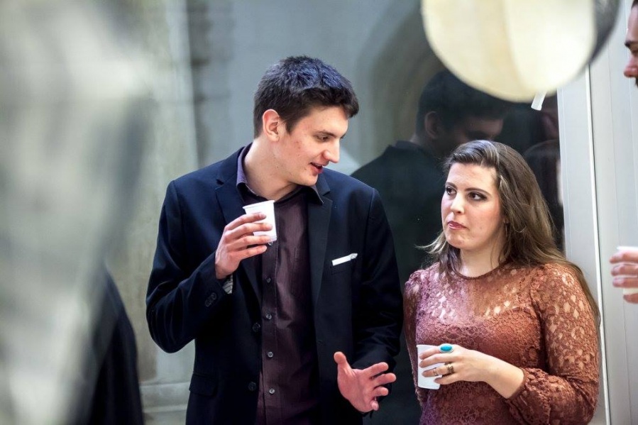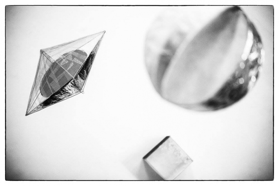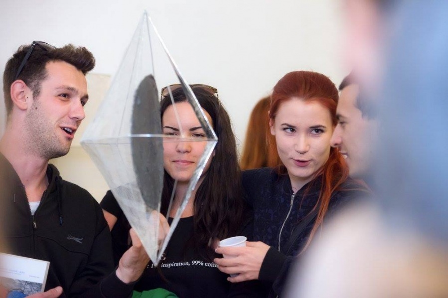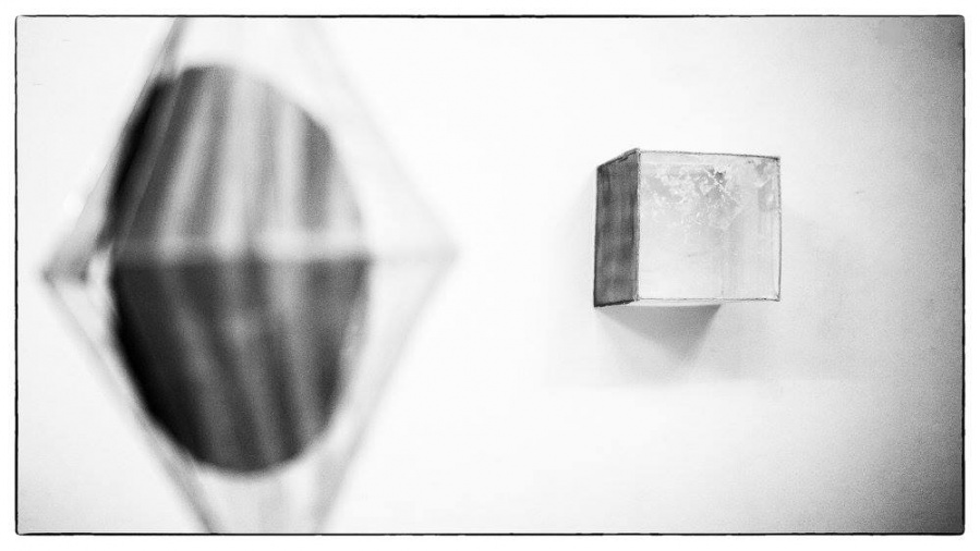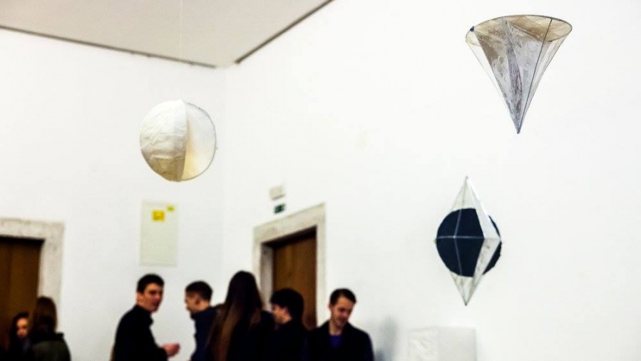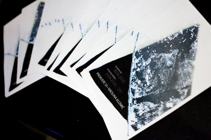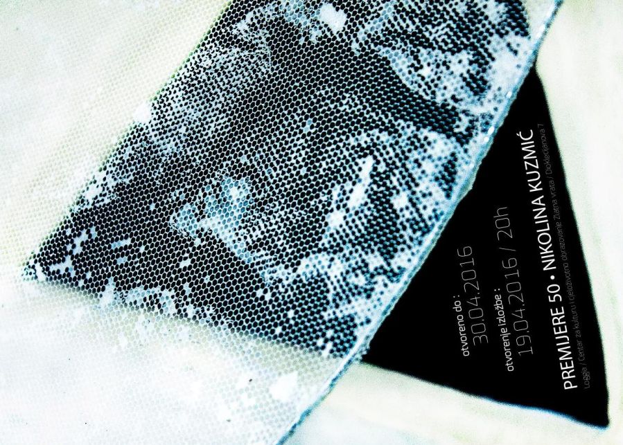 "Nikolina Kuzmić, studentica likovnog odjela Umjetničke akademije u Splitu, nakon nekoliko skupnih predstavlja nam se prvom samostalnom izložbom upravo u realizaciji projekta Premijera. Iako se do sada u radu fokusirala na organske, celularne motive prikazane na slikarskim platnima u tehnici povezivanja šećera i ljepila, sada nastoji povezati opne organičnih sinteza stavljajući naglasak na suprotnost transparentnih i reflektirajućih ploha geometrijskih tijela.