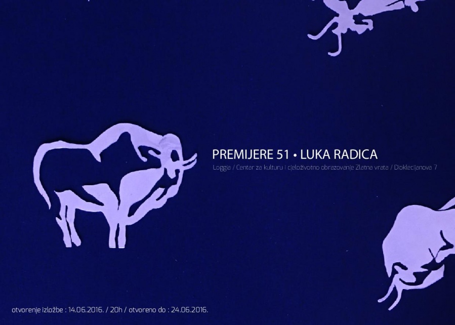 "Premijere 51 u Loggii centra Zlatna vrata druga je samostalna izložba mladog kipara Luke Radice s odsjeka za kiparstvo Umjetničke akademije u Splitu. Iako formalno još nije stekao titulu akademskog kipara, Radica je umjetnik bogate biografije.