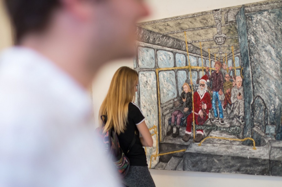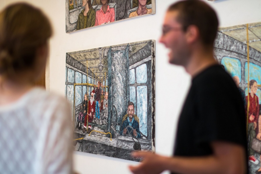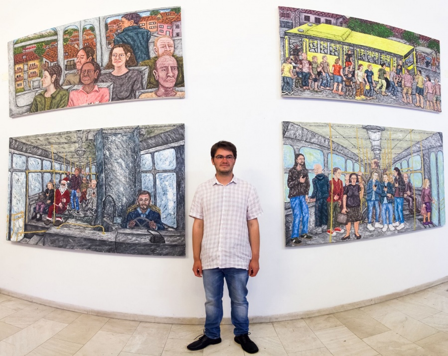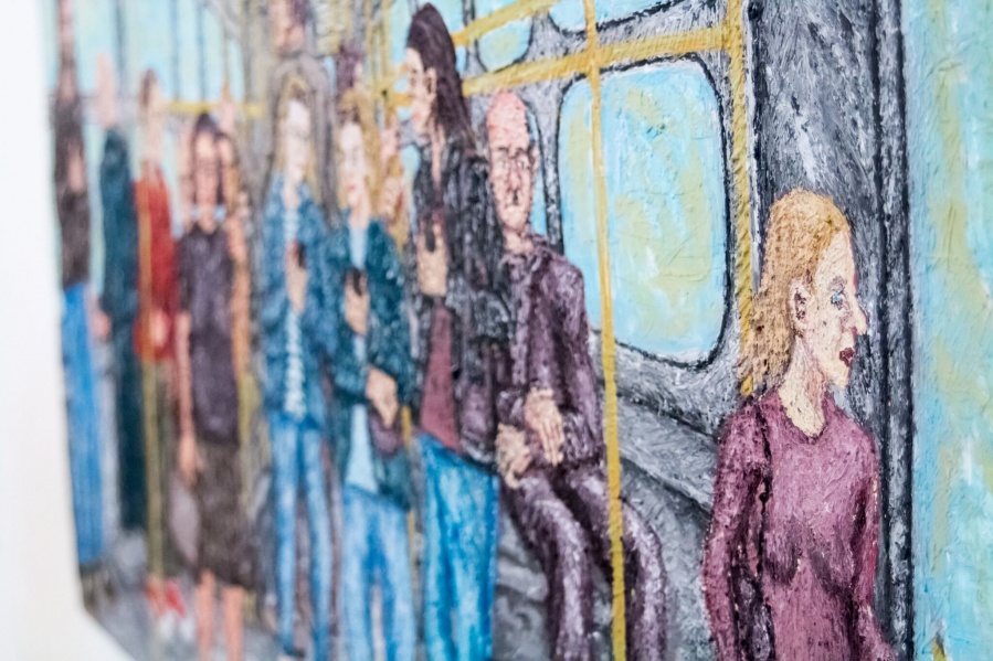 "Vozeći se autobusom autor promatra društvenu svakodnevicu velikog broja ljudi koji se koriste javnim gradskim prijevozom na području Splita i njegove okolice. Umjetnik promatra ljude, lica, komunikaciju, životne stilove i različita ponašanja ljudi te s vremenom nailazi na mnoštvo zanimljivih situacija koje se događaju unutar autobusa kao i izvan njega. Dakle, tema serije slika Igora Zdunića Priče iz autobusa ima izraziti društveni kontekst. Gradski prijevoz je, kao javno mjesto, jedno od mnogih ogledala društva u kojem umjetnik proučava socijalnu sliku grada Splita. S jedne strane, postaje očigledno da živimo u svijetu sve većih socijalno-ekonomskih razlika, a ljudi koji se koriste javnim gradskim prijevozom uglavnom imaju loš ili prosječan životni standard. S druge strane, očit je sveopći utjecaj konzumerizma. Sve veći tehnološki napredak, dostupnost društvenih mreža i upotreba “touch screen” mobitela uzrokuju sve veću izoliranost i otuđenost pojedinca. Čovjek postaje ovisan o virtualnom svijetu i posvećuje veći dio svog vremena društvenim mrežama zaboravljajući pritom na važnost izravne komunikacije. Pri ulazu i izlazu iz autobusa ljudi se međusobno susreću bez puno interakcija. Mnogi od njih tipkaju po mobilnim telefonima i nose slušalice u ušima. 1 Nedostatak izravne komunikacije i osjećaj pripadnosti nekom društvu ili društvenoj skupini pojedinac pokušava nadoknaditi slijepim praćenjem učestalih modnih trendova pa je kod odijevanja umjesto raznolikosti i osobnog izraza vidljiva uniformiranost. Nedostatak izravnih kontakata i stanovita otuđenost vidljivi su elementi na Igorovim slikama. U fokusu autorovog istraživanja su načini odijevanja, izrazi lica i geste različitih dobnih skupina. Svjestan da se od pojave avangarde dogodila kriza realističnog predočavanja stvarnosti unutar umjetnosti, naročito u slikarstvu, umjetnik ipak bira tradicionalni slikarski medij kako bi što bolje i detaljnije mogao prikazati ljudske likove različitih fizionomija.2 Međutim, usprkos vidljivoj figuraciji slikarska djela Igora Zdunića sadrže apstraktne i nemimetičke ekspresionističke elemente u svojoj strukturi. Odnos između slikarskog i linearnog vidljiv je kod rasporeda elemenata unutarnje građe autobusa. Raspored i organizaciju ljudskih likova i elemenata u prostoru umjetnik rješava geometrijskom perspektivom. U ovom kontekstu prostor autobusa ima značajnu ulogu jer predstavlja odnos čovjeka i njegove okoline, dok su ekspresionistički elementi prisutni kod upotrebe boja, poteza kistom te “zbijenosti” prikaza, a kod opisivanja karaktera ljudskih likova prisutni su i „apstraktni“ izražajni elementi.3 Upotrebom tih elemenata te vraćanjem tradicionalne slikarske tehnike umjetnik nastoji realno prikazati vlastito iskustvo i razmišljanja o životu ljudi u ovom gradu. Zdunićeve Priče iz autobusa mogu biti njegove priče, ali isto tako priče svakoga od nas. Umjetnik ostavlja promatračima da zamisle, pronađu ili ispričaju svoje priče." Petra Dajak