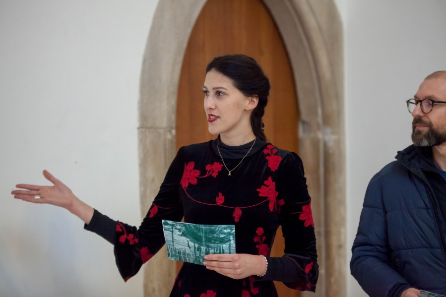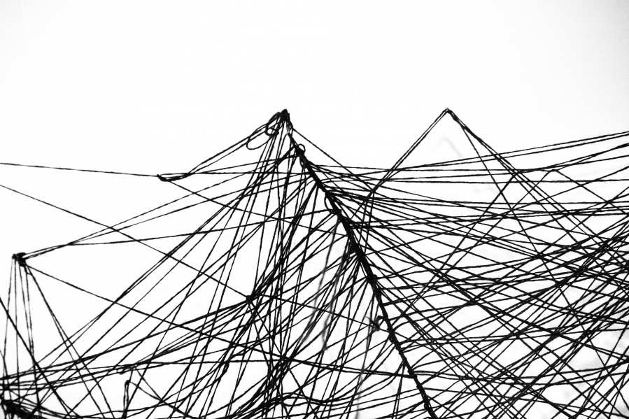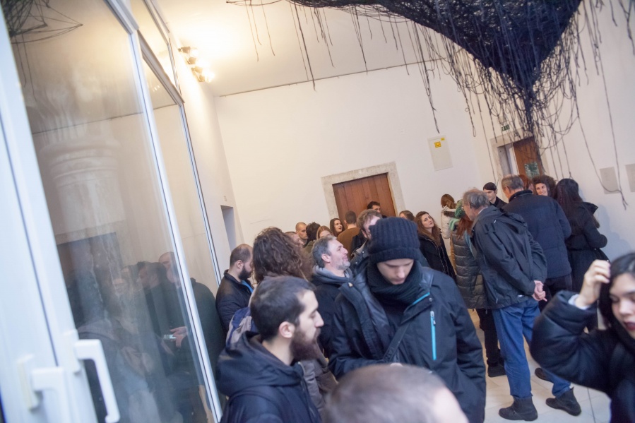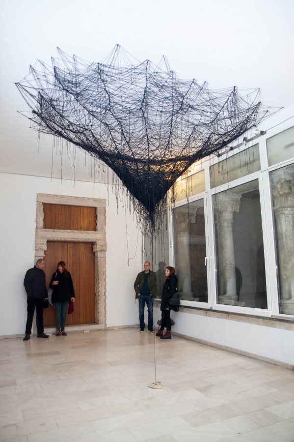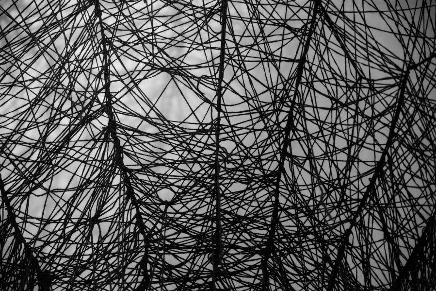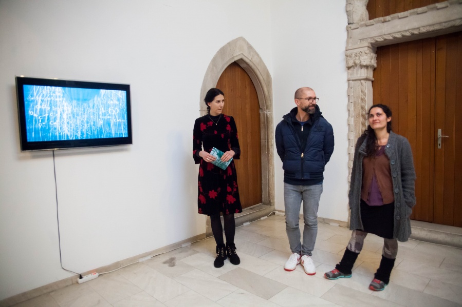 The interconnectedness of people and nature is what this exhibition is to remind us of. In creating this exhibition, Irene Reichart has decided to show just how much in common nature has with what we experience in our lives. Starting with seven poems, we are cast into an emotional vortex of the artist. They unravel an intimate path woven with emotions of disbelief and fear, patience, and finally finding strength. The video we reach next visualises this movement. It shows how our emotions can be correlated with natural processes. These processes show us how dissolution can be constructive, and that even a void can be a creation. Similarly, for us to grow we first have to crumble to pieces and let go of what we thought was truth and the striking woollen installation represents threads of processes composing and decomposing us as individuals.